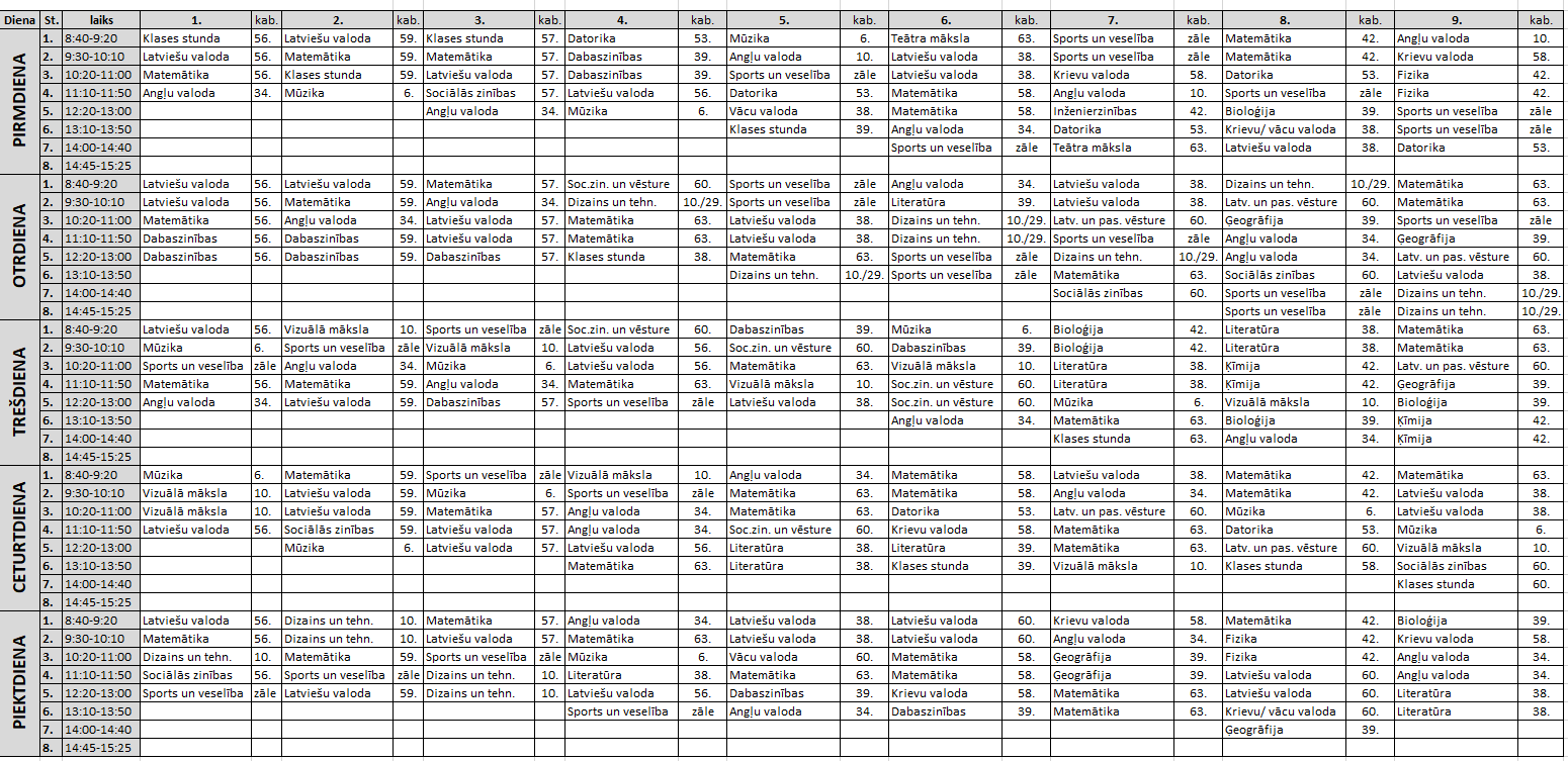 Mācību priekšmetu stundu saraksts
