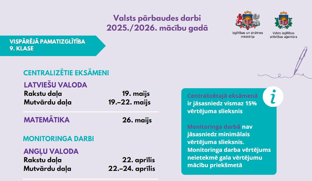 VALSTS PĀRBAUDES DARBU norise, grafiks, paraugi pieejami Valsts izglītības satura centra mājas lapā: