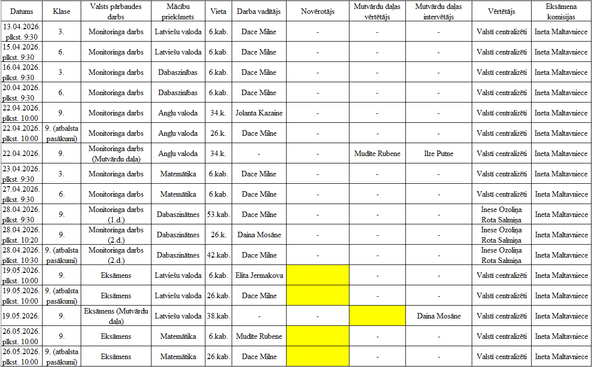 Lejasciema pamatskolas valsts pārbaudes darbu grafiks